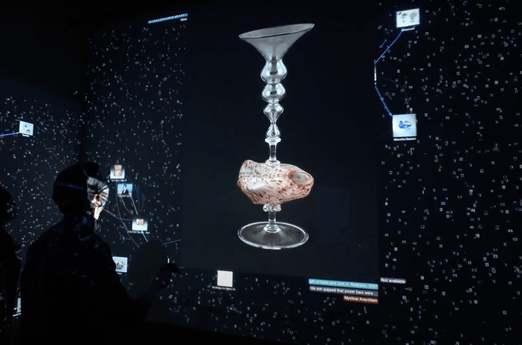 Museums have become warehouses that store more objects than they are able to display. And visitors are no longer content with the singular narratives with which the objects are framed. We are developing a project called ETITC to revolutionize the way a museum can interpret and present its collection, using the gesturally driven Zeugma interface developed by Treadle & Loam, a Los Angeles based technology-and-design atelier. This project abandons the old ways of thinking about the visitor experience by transforming the typically passive art experience into an active engagement—in which visitors take a real-time curatorial role and so find themselves reflected and identified as a vital part of the museum experience.
